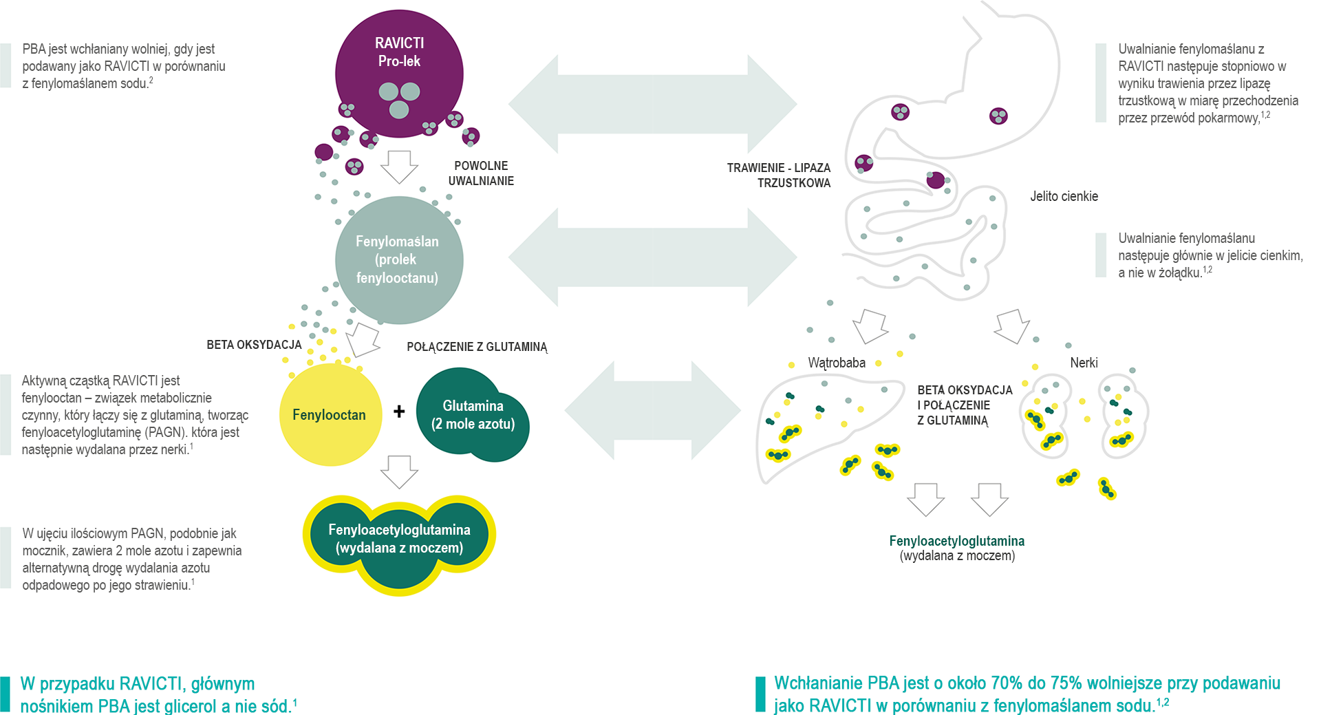 Źródła: 1. Charakterystyka Produktu Leczniczego RAVICTI. 2. Monteleone JPR et al. J Clin Pharmacol. 2013;53:699-710.